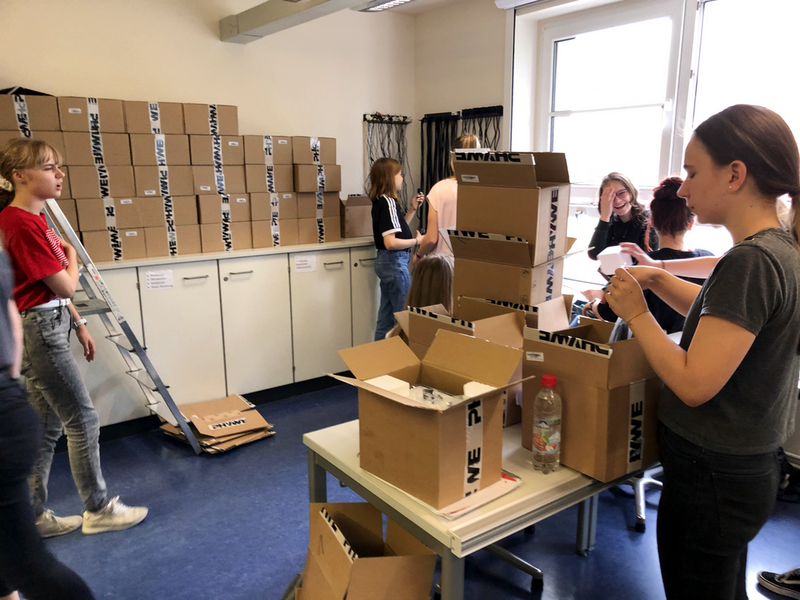 Am Dienstag, dem 14.07.2020, stellte ein „freundlicher” Spediteur unserer neue E-Ausrüstung auf den Hof. Die kräftigen Jungs aus der 9a schleppten die Pakete in die Physik.