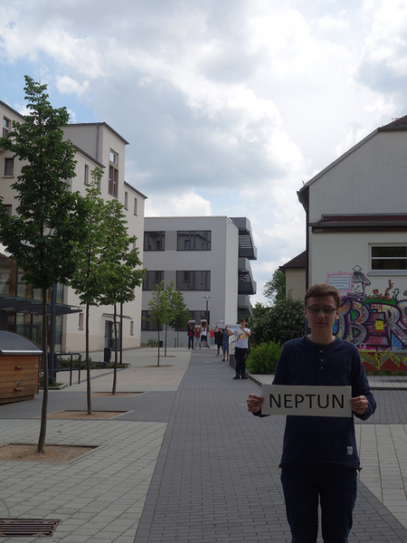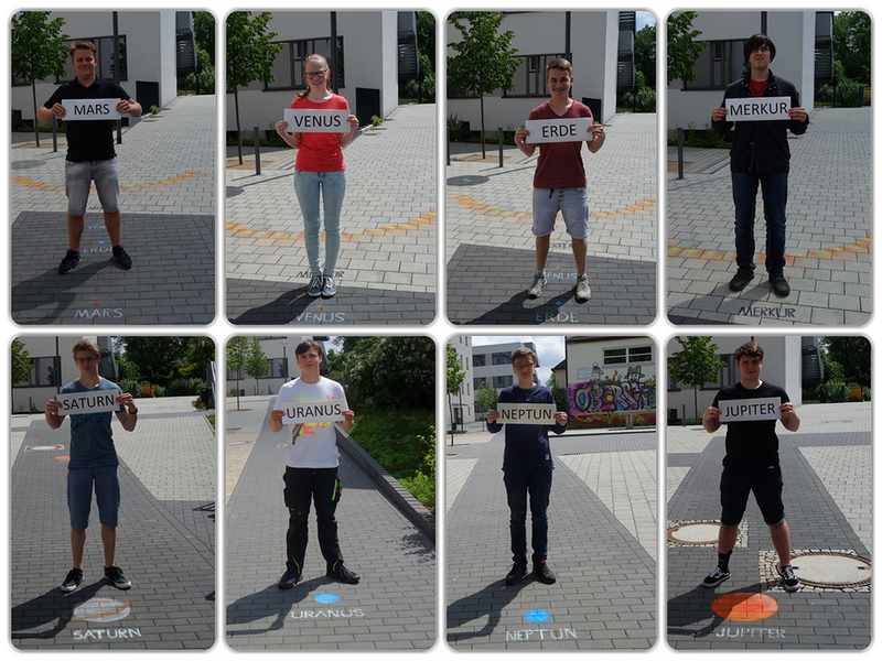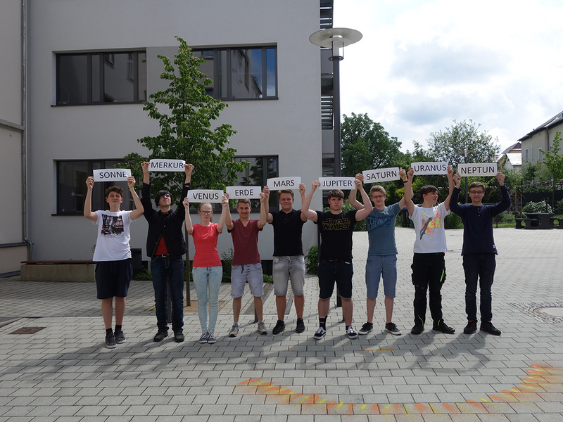 Der Neigungskurs Astronomie der Klassenstufe 9 hat ein maßstabsgerechtes Modell der Planeten unseres Sonnensystems auf unseren Schulhof platziert.
