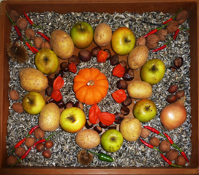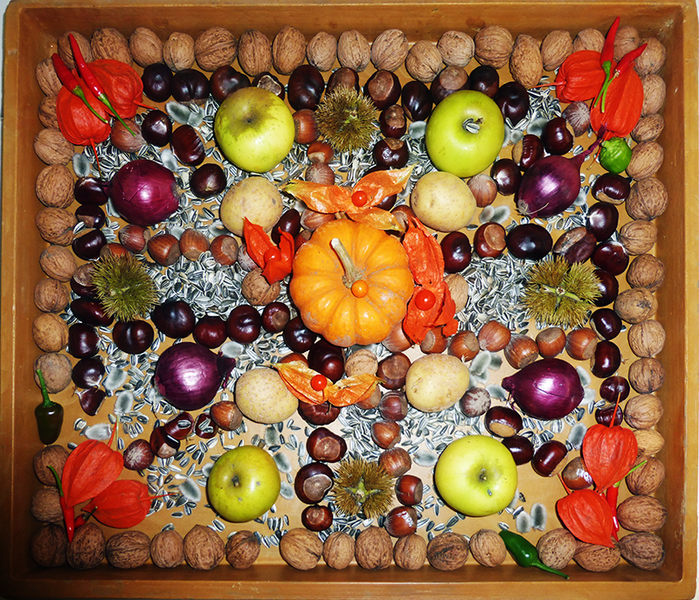 Eine andere Gruppe nutzte die Früchte des Herbstes zum Legen von Mandalas und Basteln von Anhängern und Fensterschmuck.