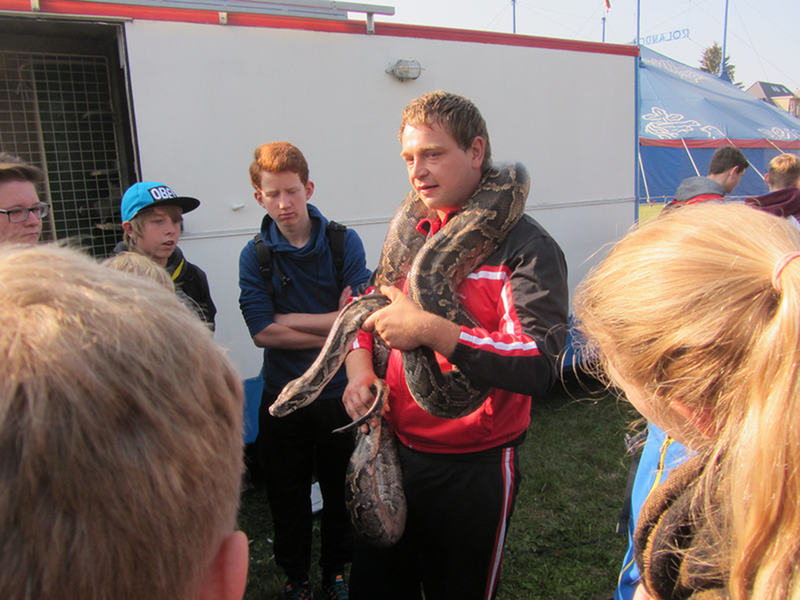 Aber den Kindern wurde versichert, dass die Schlange ihnen nichts tut, solange sie nicht stark nach Parfüm oder Schampon riechen. Den Kindern hat besonders gefallen das sie gefährliche Dinge tun konnten ohne sich zu verletzen, da sie ja professionelle Hilfe hatten.