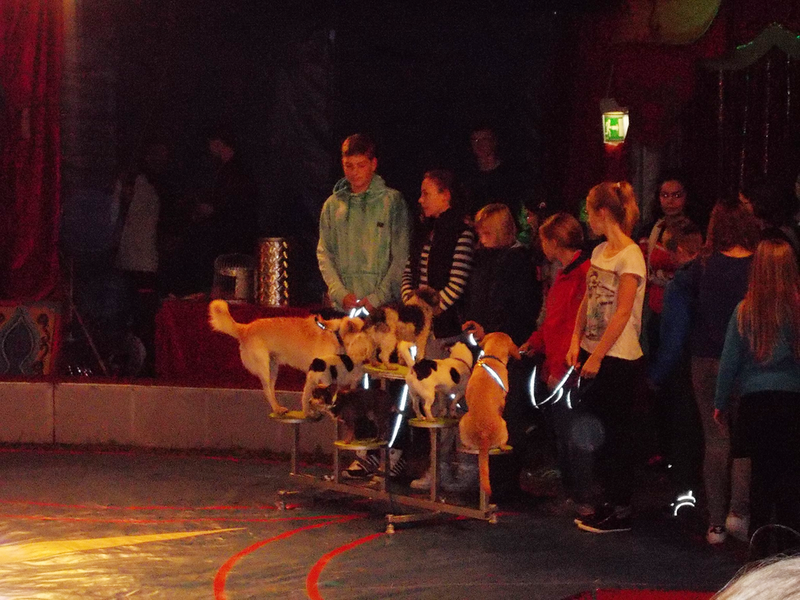 Bei der Show hat man echt viel Spaß. Auch die Kinder und Jugendlichen hatten viel Spaß dabei, obwohl sie sträng trainieren mussten. Wir fanden leider dass die Musik für die Hunde viel zu laut war.