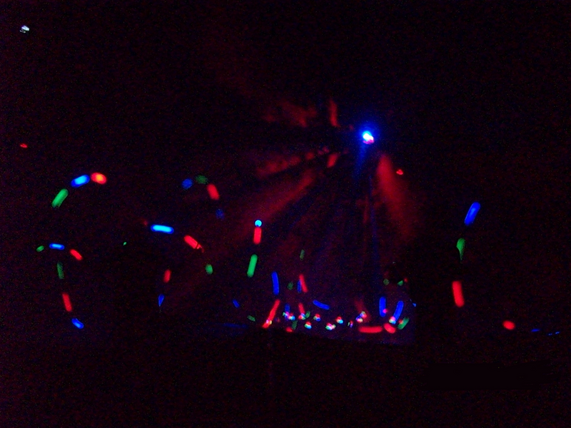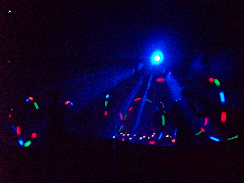 Das Zelt wird abgedunkelt und die Artisten treten mit ihren leuchtenden Plastikbällen in die Manege, außerdem haben die Artisten dunkle Kleidung an, so dass man nur die leuchtenden Bälle sieht.