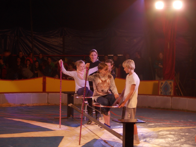 Die Gruppe besteht aus 7 Kindern. Zuerst haben sie sich der Größe nach in eine Reihe gestellt, das ist die Grundaufstellung. Dann hat Scalett (die Tochter des Zirkusdirektors) ihn erklärt wie sie auf dem Seil laufen müssen. Am nächsten Tag trainierten sie hart für die Aufführung. Dabei mussten sie Körperspannung und Haltung beweisen. Bei der Aufführung liefen sie nur mit Hilfe eines Stabes auf dem Seil. Manche zeigten auch besondere Tricks wie zum Beispiel: sind zwei Mädchen auf dem Seil in Ringe gestiegen und haben sich hin gehockt, zwei andere Mädchen zeigten eine Standwaage, ein kleines Mädchen machte sogar einen Spagat, am Ende sprang Ferdinand aus der Klassenstufe 10 sogar über einen Stab vom Seil wieder auf das Seil. Sensationell !!! Das ganze sah sehr elegant aus. Die Seiltänzer brauchten viel Konzentration und Disziplin.
