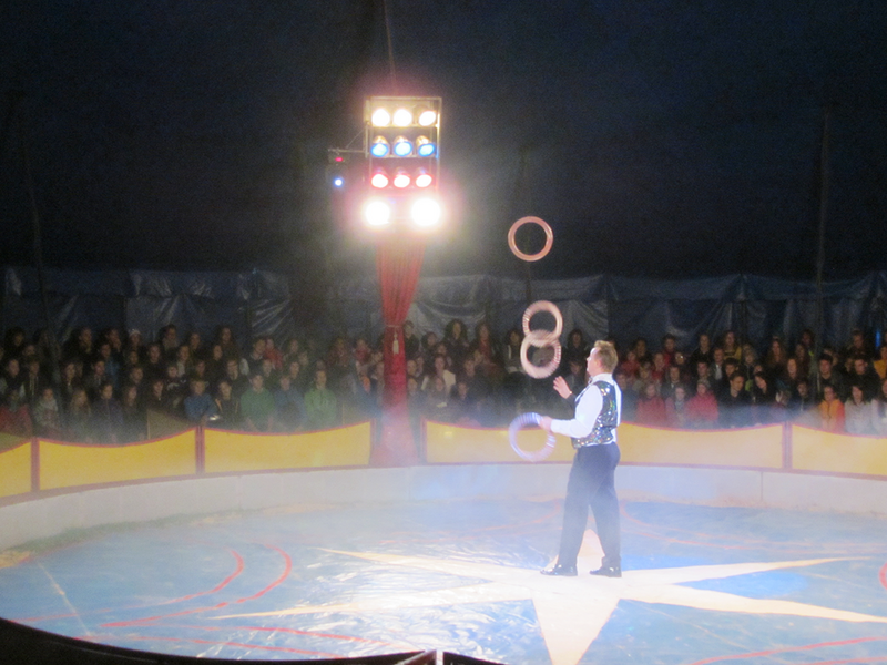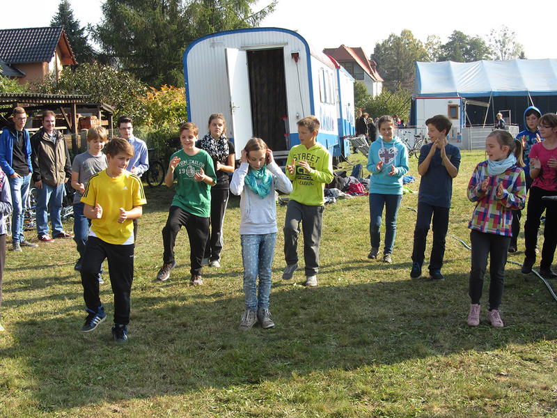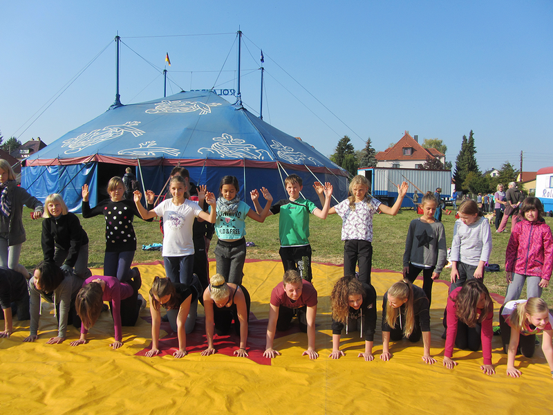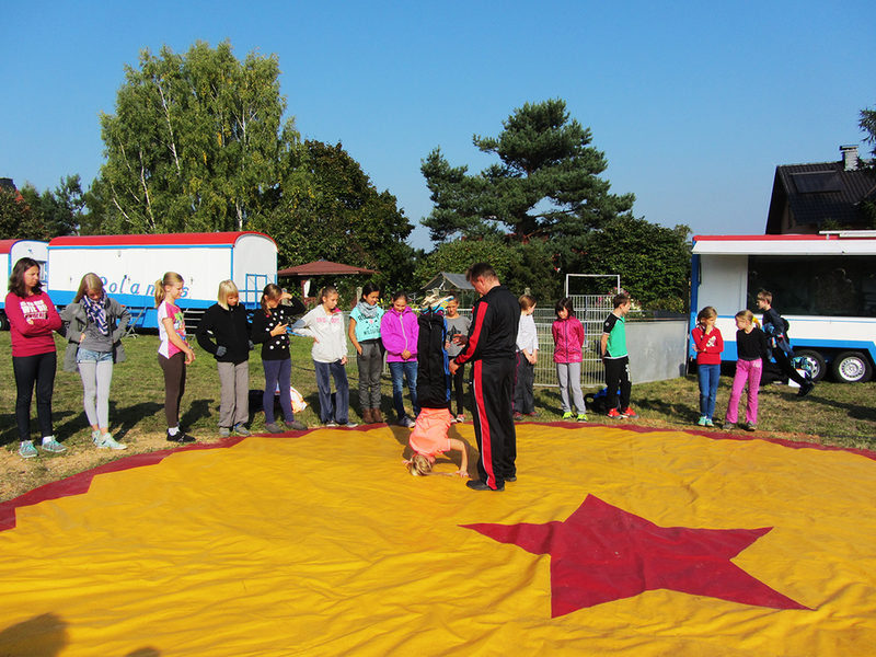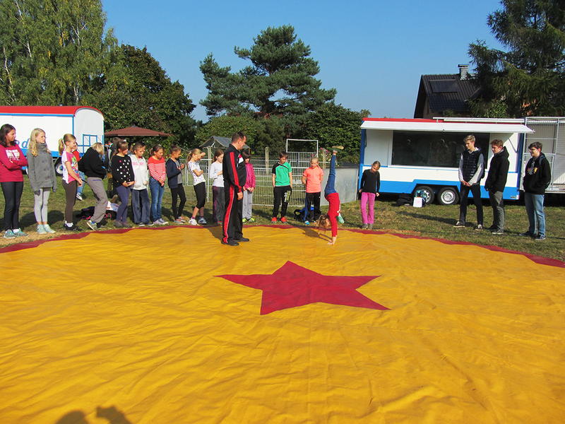 Am Montag, 05.10.2015, ging es nun richtig los. Alle Schüler und Lehrer trafen sich 8:20 Uhr auf dem Zirkusgelände. Nachdem alle Gruppen und Teams sich gefunden hatten, nahmen wir im Zirkuszelt Platz. Dort wurden wir vom Zirkusdirektor freundlich begrüßt und über einige wichtige Verhaltensweisen belehrt.
