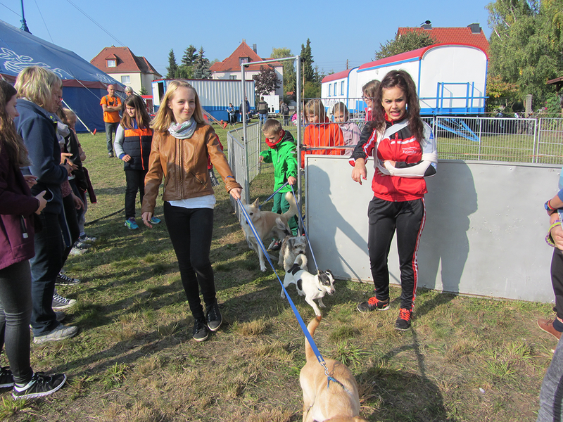 Als nächstes zeigen die Profis einen kurzen Ausschnitt aus ihrem Zirkusprogramm. Wir sahen eine Hundedressur, einen Jongleur, eine Taubendressur, eine Clownsnummer und alles verpackt in einer Geschichte um einen Zauberer und ein Mädchen, das erst wieder einen Mädchen werden wollte.