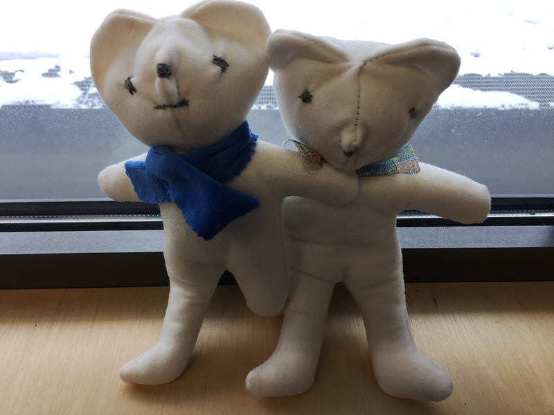 Wer mochte, konnte noch ein kleines Halstuch aus Stoffresten nehmen, um den Teddybären zu verschönern.