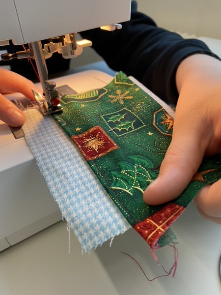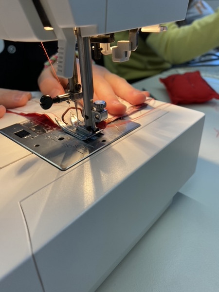 Aus der Kiste mit den Weihnachtsstoffen suchte sich jeder seinen Lieblingsstoff für den Stiefel und Material zum verzieren aus. Dann musste zugeschnitten werden: zweimal Oberstoff und zweimal Futterstoff waren von der Pappschablone zu übertragen. Das verzieren war manchmal eine ganz schön knifflige Angelegenheit, auch das nähen um die große Rundung ließ so manchen verzweifeln. Aber nach mehreren Stunden angestrengter, konzentrierter aber auch fröhlicher Arbeit können sich wunderschöne Nikolaus Stiefel sehen lassen. Und vielleicht hat der Nikolaus sogar etwas für die fleißigen Näherinnen und Näher hinein gesteckt.