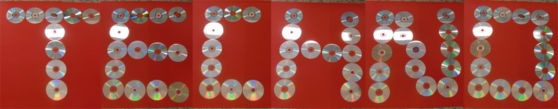 Ein vollständig ausgefülltes Raster aus CD´s war der Ausgangspunkt für die Buchstaben von Anna, Tom und Zoe aus Klasse 8. Nun sollten nur CD´s herausgenommen werden und der jeweilige Buchstabe übrig bleiben.