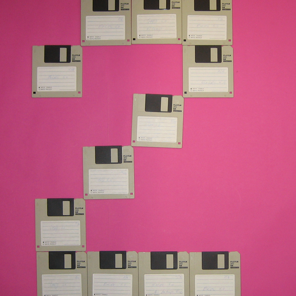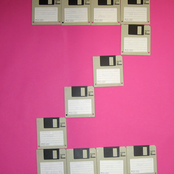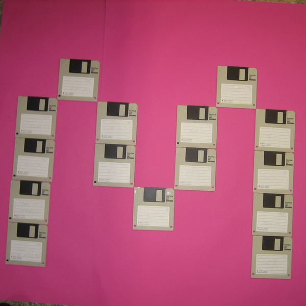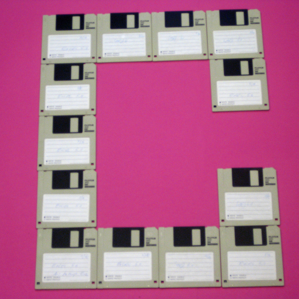 Relativ einfach war es für Peter aus Klasse 7, die Disketten im Raster auszurichten, weil sie durch ihre rechteckige Form problemlos aneinandergereiht werden konnten.