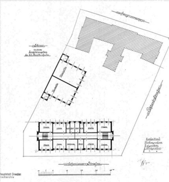 ... in den ersten Jahrhunderten des Bestehens des Ortes Striesen der Dorfschullehrer die Kinder und Jugendlichen reihum in den Bauernhäusern beschulte und dafür freie Kost und ein relativ geringes Entgelt erhielt, wurde 1829 oder 1839 (es liegen diesbezüglich verschiedene Angaben vor) am Landgraben die erste Schule erbaut und in Betrieb genommen.