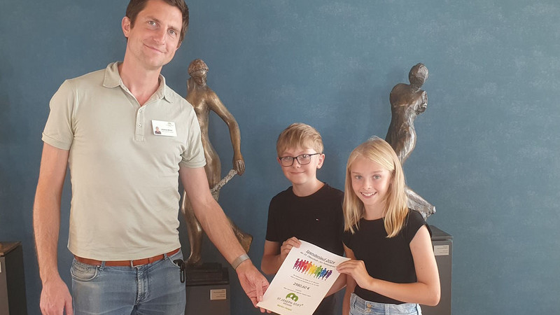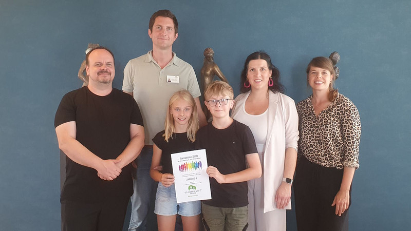 Am Donnerstag, dem 22.08.2024 übergab eine Delegation der 25. Oberschule „Am Pohlandplatz“ den Erlös des Spendenlaufes an Herrn Johannes Bittner, den Leiter des Marien-Hospiz, Canalettostraße 10 in Dresden. Fabienne und Oskar aus der Klasse 6b überreichten Herrn Bittner eine Urkunde mit der Spendensumme von 2980,60 Euro, begleitet von zwei Vertreterinnen des Fördervereins, Kristin Rätze und Julia Pätzold sowie dem Koordinator Nick Kannewurf.