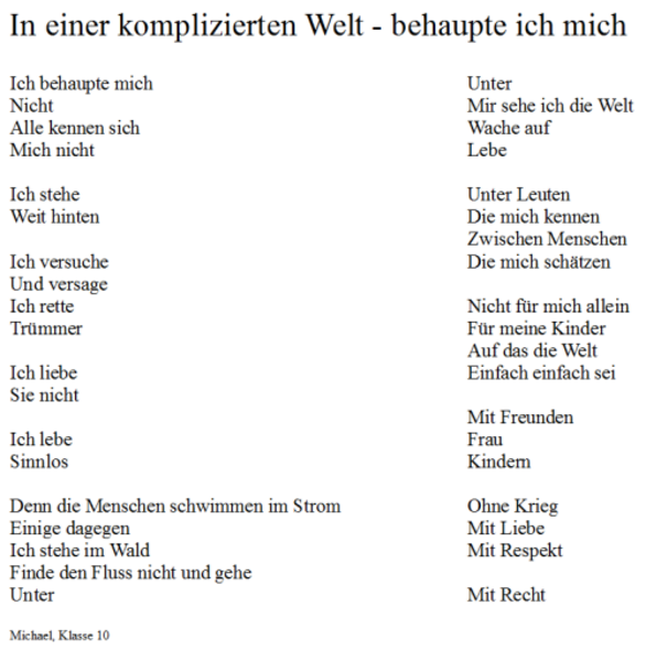 ... verschiedener Textarten schrieben die Schüler der Klasse 10 selbst einen Text zum Thema "Sich behaupten in einer komplizierten Welt".