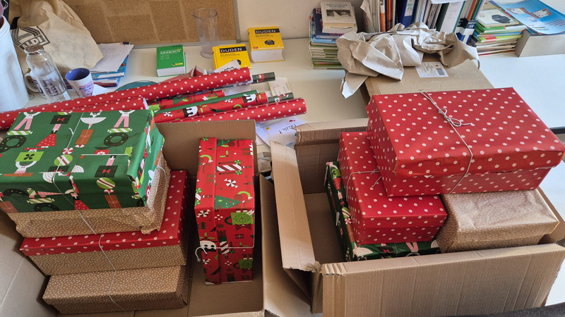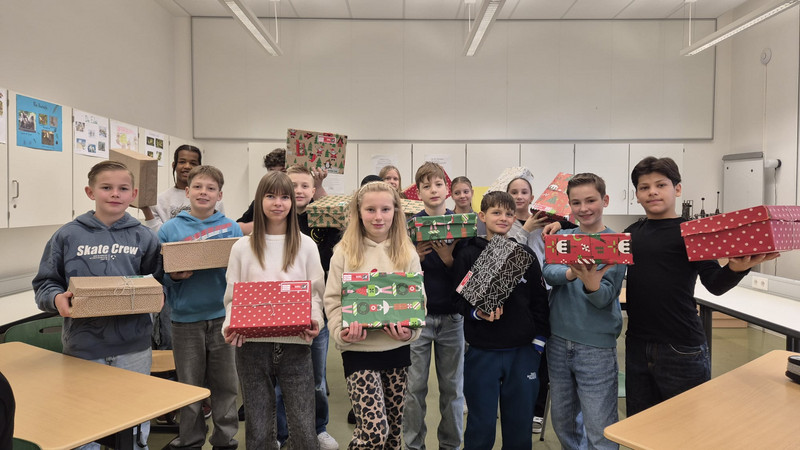 Im Dezember diesen Jahres nahm die Klasse 6d an der Aktion "Weihnachten im Schuhkarton" teil.