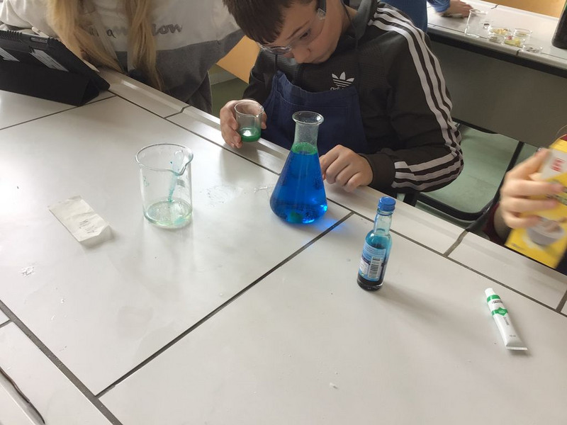 Am Donnerstag tüftelten die Schülerinnen und Schüler der 5b an unterschiedlichen Experimenten im Chemiekabinett.