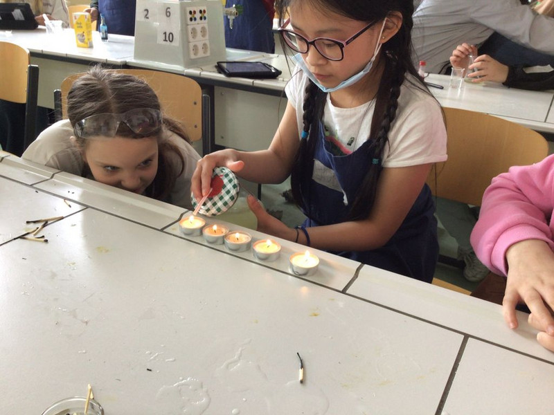 Dabei konnten beim Bau einer Lavalampe, beim Basteln eines Feuerlöschers, bei der Chromatografie oder beim Schichten verschiedener Substanzen gemäß dem Motto der Projekttage unterschiedlichste Bewegungen beobachtet werden.