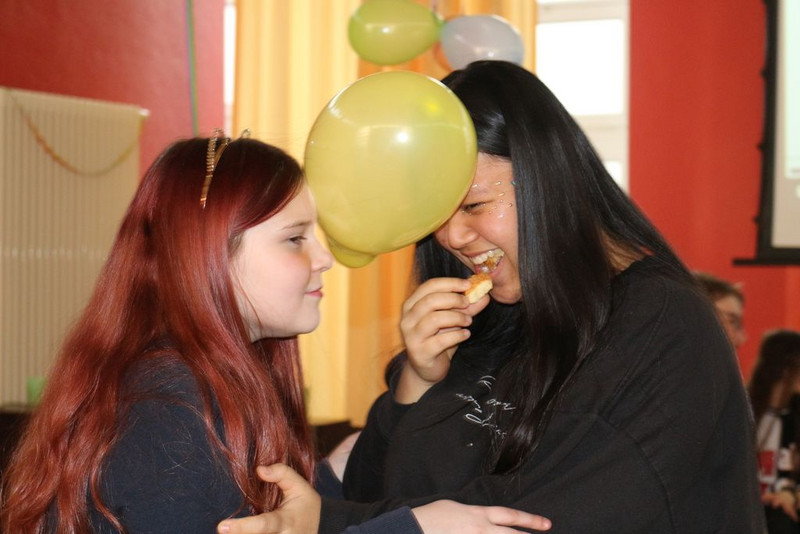 Kurz vor den Winterferien gab es einen Faschings-Spiele-Nachmittag an unserer Oberschule. Mit lustigen Spielen wie z.B. Eierlauf, Topfschlagen oder Stuhltanz gestalteten wir einen abwechslungsreichen Nachmittag. Die Verkleidungen waren individuell von Insekten bis hin zu Material Girls.
