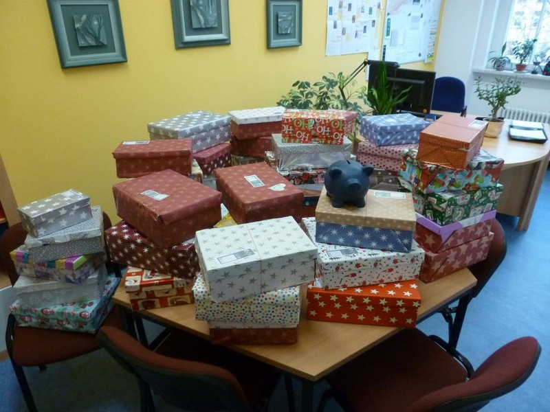 Wir bedanken uns recht herzlich bei den Schülern, bei den Eltern und auch bei den Kollegen, die sich an der Aktion beteiligt haben. Ohne Sie wäre es nicht möglich gewesen 72 Schuhkartons und 45,00 Euro Spendengeld zu verschicken.
