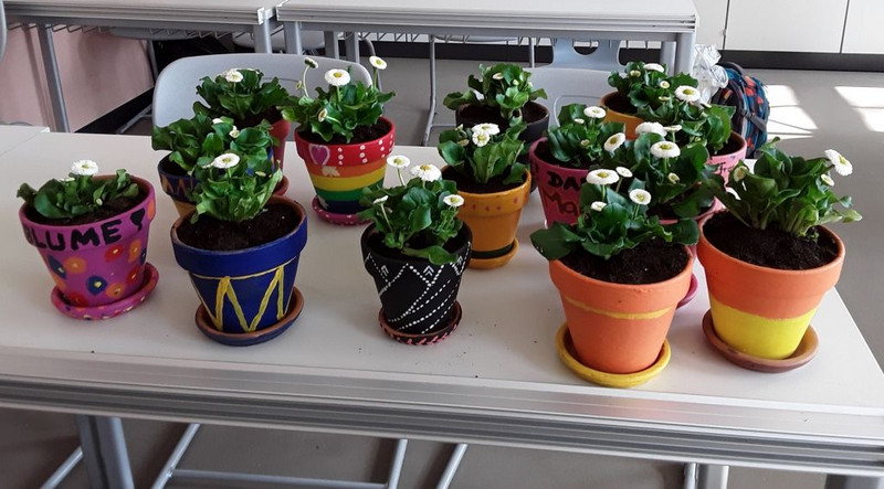 Emsig waren alle bei der Sache als es um das Bemalen von Terrakotta-Töpfen ging, um den Frühling ins Zimmer zu holen.