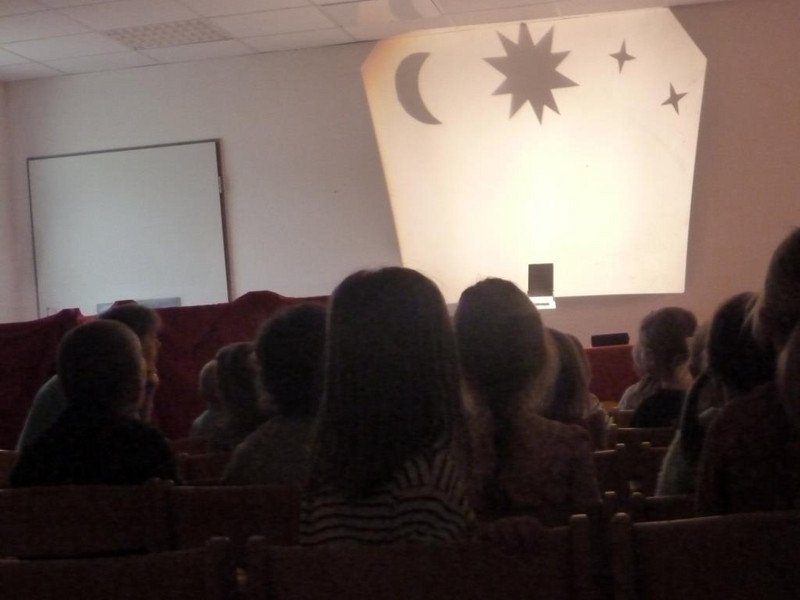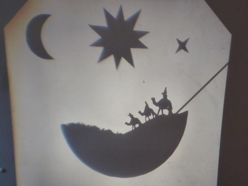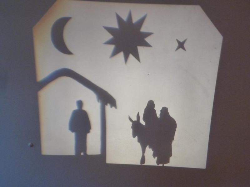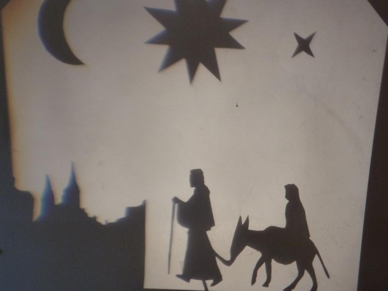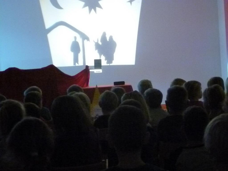 Die Eintrittskarten wurden von einem Weihnachtsengel und einem Rentier entwertet. Alle nahmen ihre Plätze ein. Und dann wurde es dunkel und die Weihnachtsmusik wurde leiser. An der Wand erschienen nach und nach die Schattenbilder zur Geschichte - kleine wie große Kinder waren voll konzentriert und folgten gespannt der Handlung.