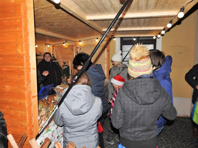 Am 4.12.2018 beteiligte sich die Klasse 7b an der Mitgestaltung des Türchens. Pünktlich um 17 Uhr wird jeden Tag ein Fenster geöffnet. Neben vielen heimlichen Überraschungen hatte die 7b die Gelegenheit ihre Klassenkasse aufzubessern. Mit Kuchen, Keksen, Schokoäpfeln und anderen Leckereien sowie Basteleien konnte der Verkauf starten.