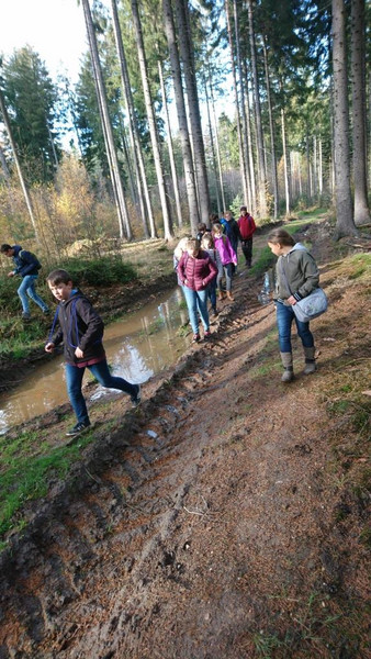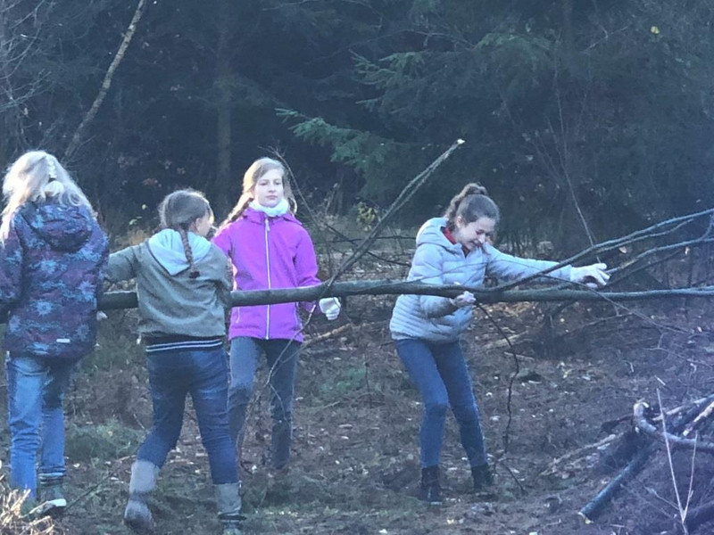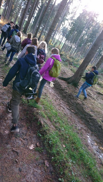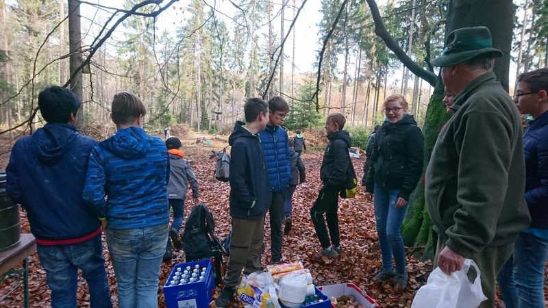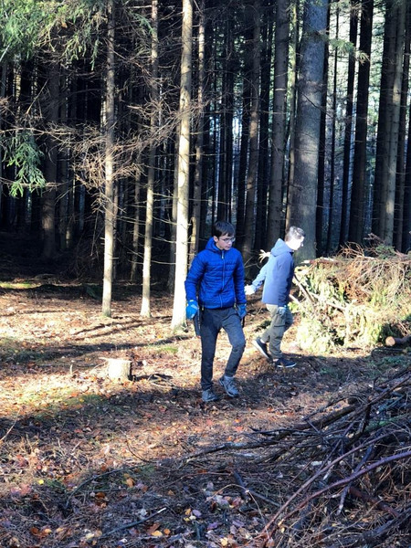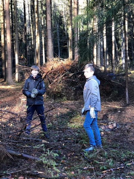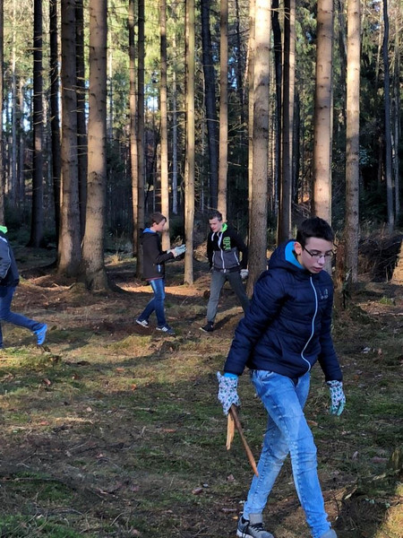 Einen Beitrag für die Umwelt leistete die 7b im November als es hieß: Unser Wald soll sauber werden bei Herrn Scheumann im Wald. Ausgestattet mit wettergerechter Kleidung, festem Schuhwerk und Handschuhen konnte die große Aufräumungsaktion gestartet werden. Eingeteilt in 4 starke Gruppen konnte der Waldboden von großen Ästen befreit werden. Anlass der Bitte war die Zerstörung vieler Bäume durch den Borkenkäfer.