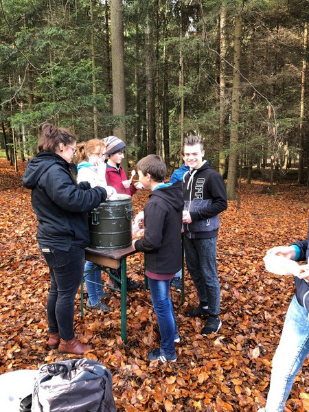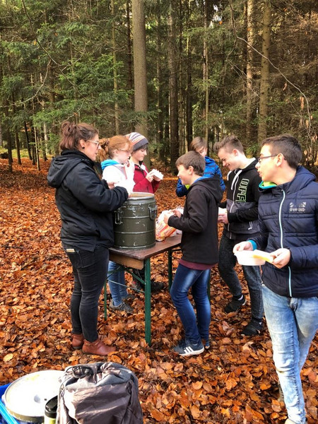 Nach ca. 3 Stunden gab es eine warme Gulaschsuppe zur Stärkung. Am Ende der Aktion hatten wir noch Zeit zum Pilze sammeln, Hochstand betreten und Wandern. Ein gelungener Tag an der frischen Luft zum Wohle unserer Umwelt.
