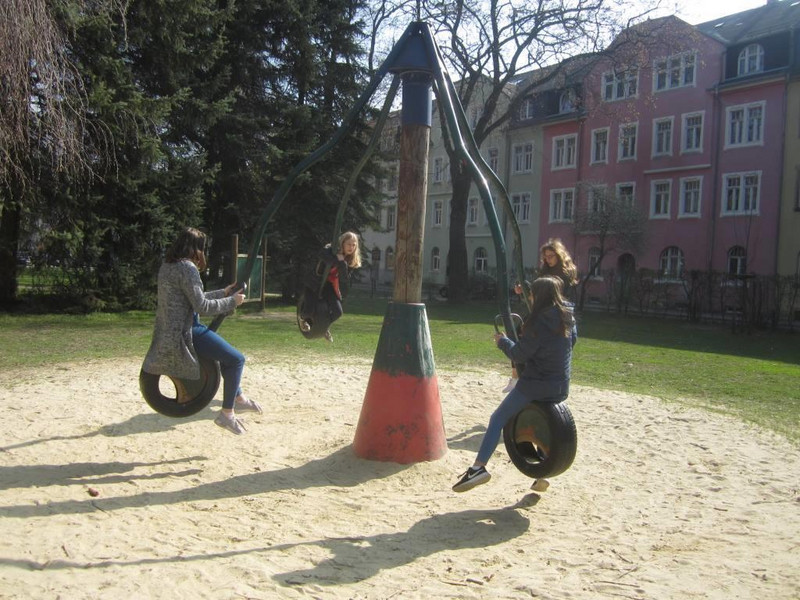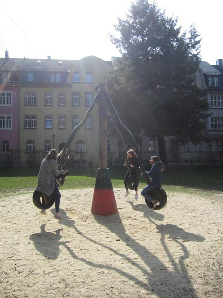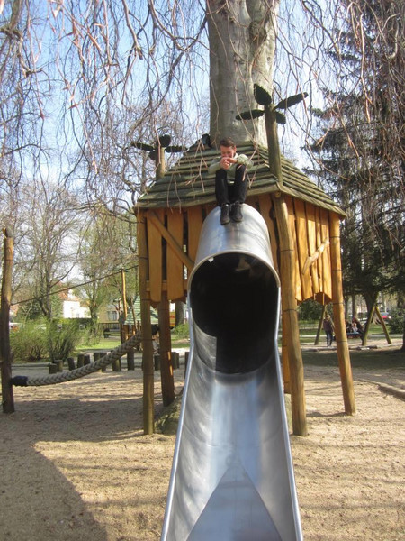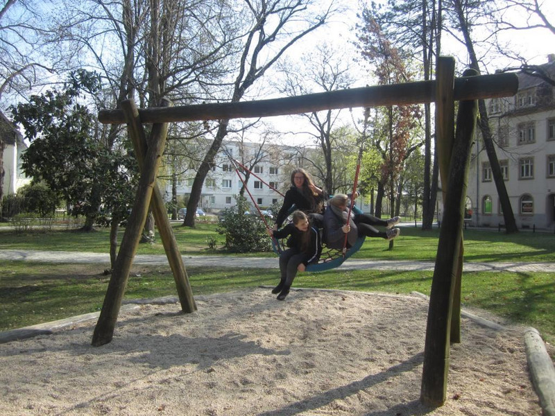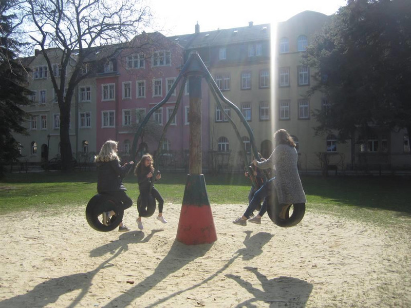 Auf dem Weg zu Schule schlägt plötzlich jemand einen Umweg über den Spielplatz vor, dort wird gerutscht, geschaukelt, gewippt, Blümchen gepflückt und die Sonne genossen.