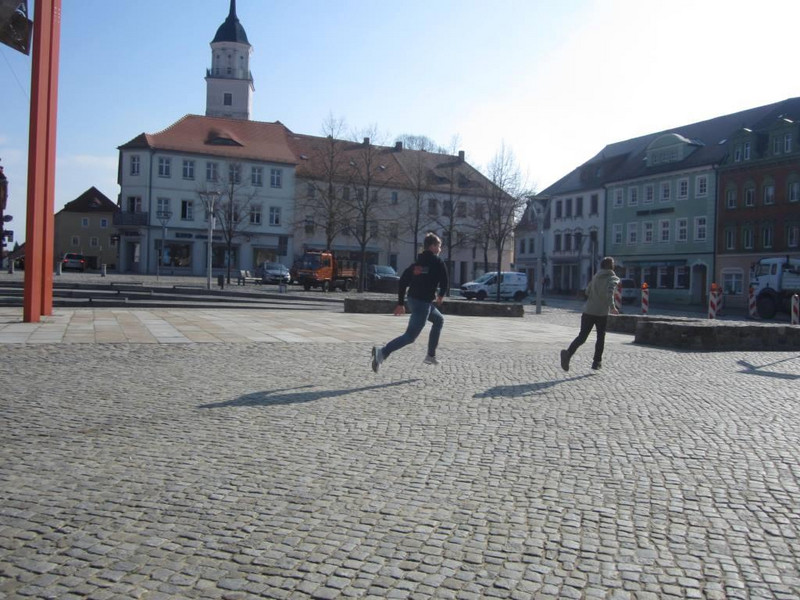 Gesagt – Getan! Gemeinsam machte sich die Klasse auf dem Weg Richtung Markt. Ziel war die Eisdiele. Doch auf dem Schild stand GESCHLOSSEN. Die Welt schien sich gegen uns verschworen zu haben. Plötzlich rennen alle wild durcheinander, einer jagt den anderen. Laut schreit jemand „Du bist!“.