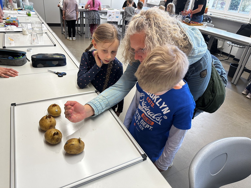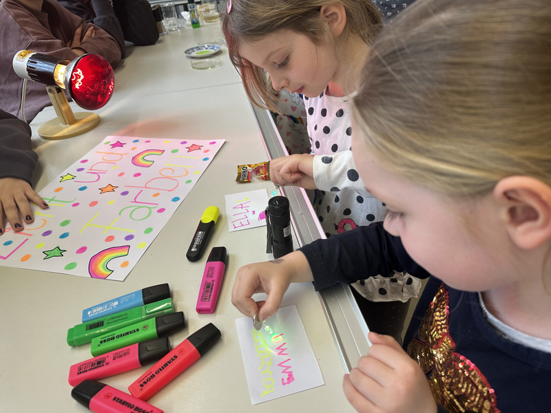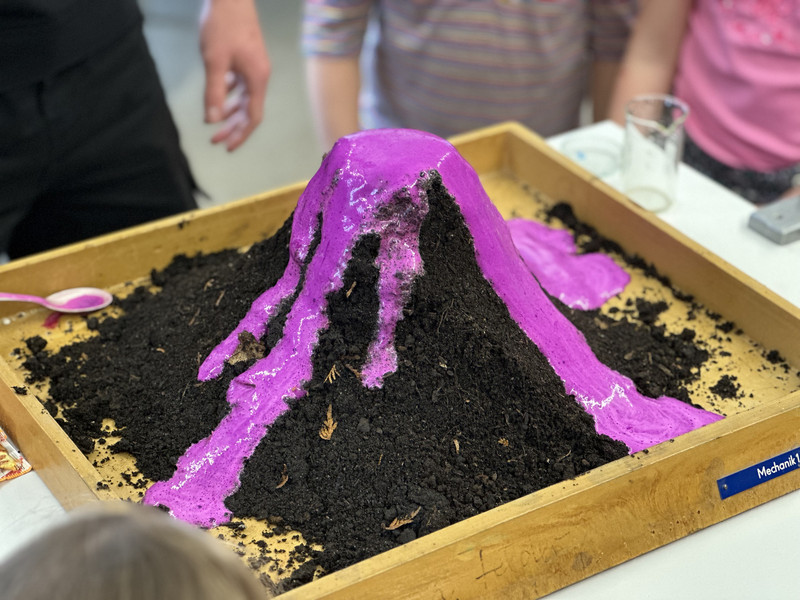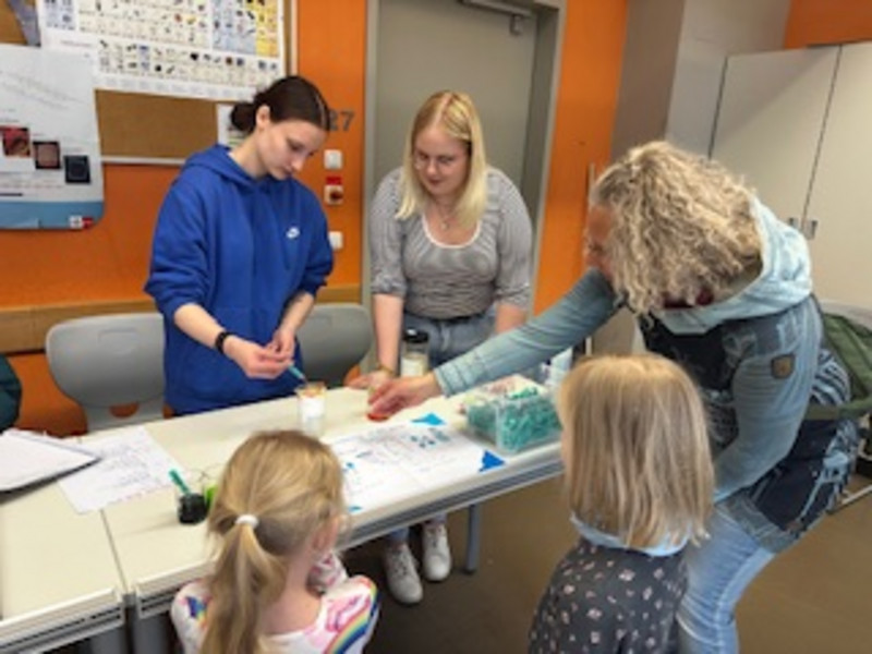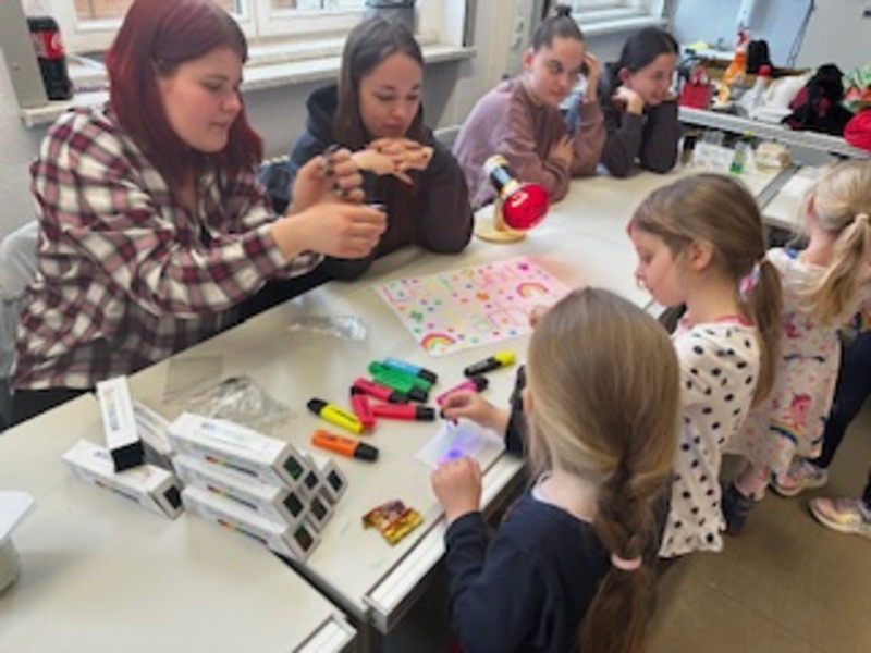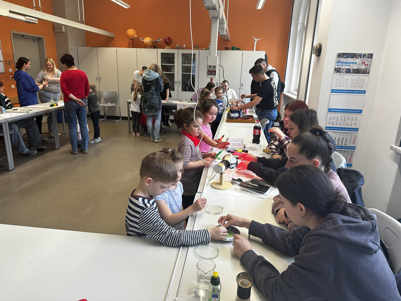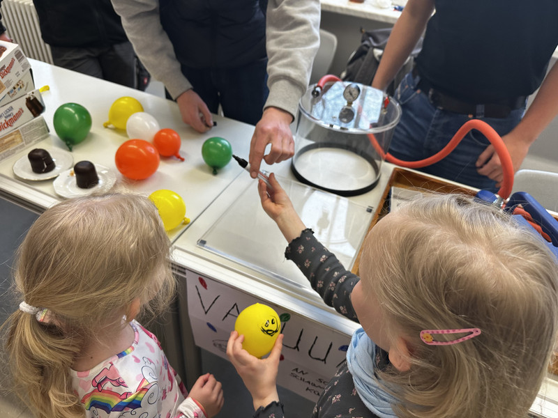Die letzte Physikstunde vor den Prüfungen nutzte die Klasse 10d für eine Experimentiersafari zu den Elementen Feuer, Erde, Wasser und Luft. Dazu hatten die Schülerinnen und Schüler die Vorschulkinder aus der Kita Märchenland eingeladen. Schnell waren im Vorfeld viele Ideen für Experimente gesammelt, Absprachen getroffen und letztendlich das Physikzimmer umgeräumt. Mit großer Begeisterung experimentierten die Kleinen mit den Großen und die Großen mit den Kleinen. Fleißig wurden viele Forscherfragen gestellt und altersgerecht beantwortet. Untersucht wurden Feuer und Blitz, elektrischer Strom, Oberflächenspannung von Wasser, Licht und Farben, wie Luft Wasser verdrängt, Lavalampen funktionieren und ein Vulkan ausbricht. Eine Teebeutelrakete wurde gestartet und Wasser bei Zimmertemperatur zum kochen (die Großen sagen zum Sieden) gebracht. Zum Abschluss wurde auf dem Schulhof ein Freiluftexperiment durchgeführt. Gespannt beobachteten alle, was passiert, wenn Mentos in eine Colaflasche fallen.
