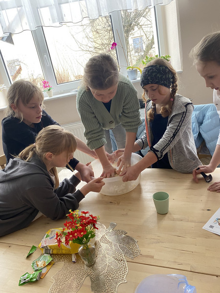 Der krönende Abschluss fand im Schullandheim Burk statt, wo die Kinder in kleinen Teams Osterbrot backten. Mit viel Begeisterung und Teamgeist entstanden leckere, duftende Brote, die den Wandertag perfekt abrundeten.