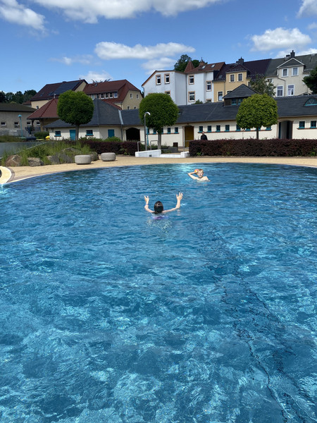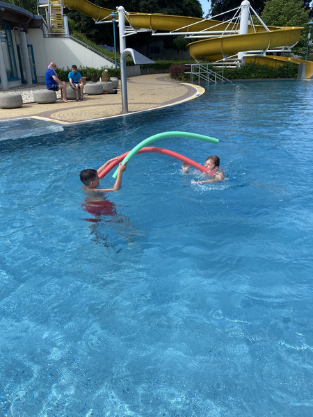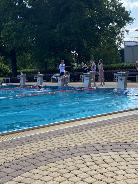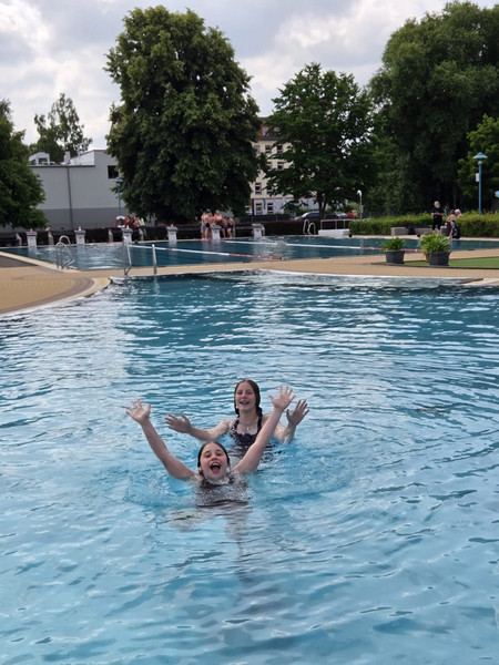 Die Schülerinnen und Schüler übten fleißig das Tauchen, Schwimmen in Bauch- und Rückenlage, Sprünge vom Beckenrand und Wettschwimmen. Neben dem Basistest blieb auch Zeit für freies Baden und natürlich für den Besuch am Kiosk – denn Schwimmbadpommes schmecken einfach besonders gut.