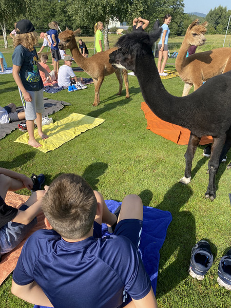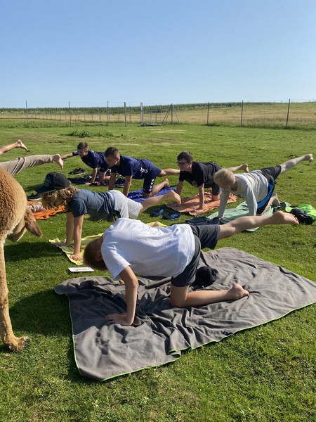 Der Ausflug der Klasse 6c nach Neukirch war alles andere als gewöhnlich: Ziel war eine Wiese für eine Runde Alpaka-Yoga! Zwischen den neugierigen, flauschigen Distanzmeistern wurden die Handtücher ausgebreitet und die Yogamatten gegen Gras getauscht.