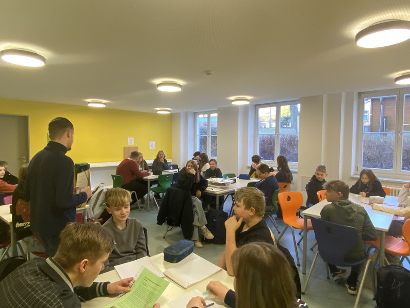 Mit Kuchen und Muffins übergab der Schülerrat stellvertretend für alle Schülerinnen, Schüler und Lehrkräfte ein kleines Zeichen der Wertschätzung. Herr Mütterlein nahm die süße Überraschung sichtlich gerührt entgegen.