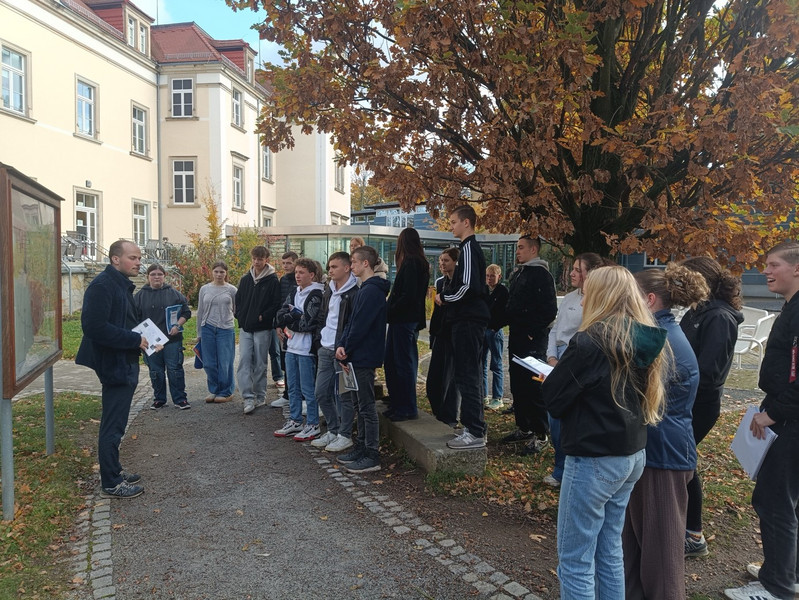 Im Rahmen des Geschichtsunterrichts zum Thema „Herrschaft und Alltag im Nationalsozialismus sowie Völkerverbrechen“ unternahmen die Klassen 9a, 9b und 9c am 28.10.25 und 29.10.25 eindrucksvolle Exkursionen zur Gedenkstätte Pirna-Sonnenstein. Ziel war es, ein tieferes Verständnis für die Verbrechen des Nationalsozialismus zu gewinnen und die Bedeutung von Erinnerungskultur bewusst zu erleben.