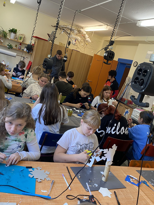 Zwei Klassen durften sich in Herrnhut mit den berühmten Sternen beschäftigen, während eine Klasse in der Lehrküche Kekse backte. Dass diese nicht nur essbar, sondern sogar lecker waren, verdient besondere Erwähnung.