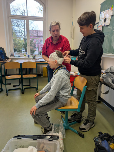 Der zweite Teil war ebenfalls sehr praktisch. Stabile Seitenlage, Pflaster kleben, Kopfverband üben – alles, was man wissen muss, wenn´s drauf ankommt wurde ausprobiert.
