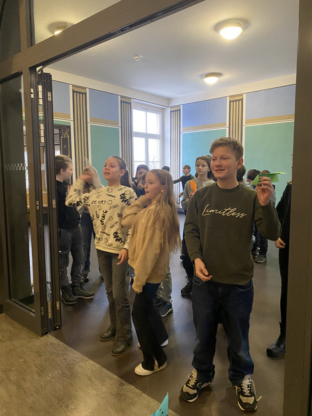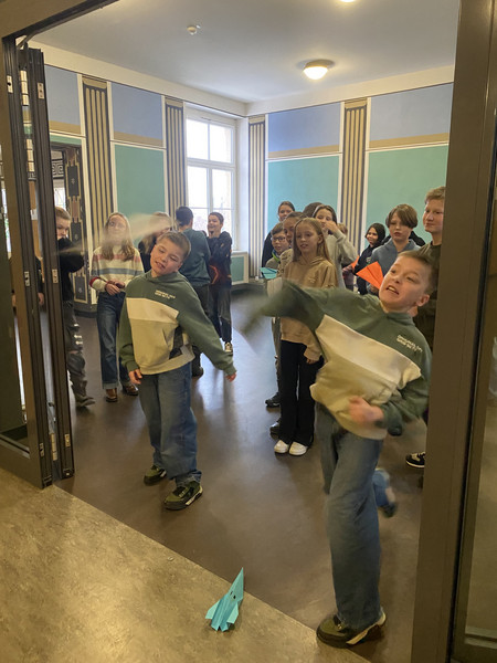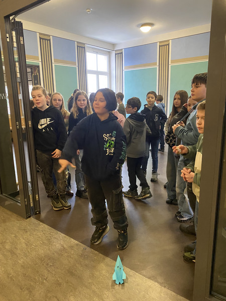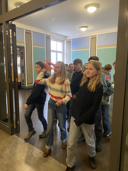 Mucksmäuschenstill ging es in den Flur. Aufstellen an der Startlinie, konzentrierte Blicke nach vorn – schließlich galt es, den 14 Meter langen Gang zu überwinden. Natürlich unter Einhaltung aller Sicherheitsmaßnahmen und unter strengem Blick der Biologielehrerin. Die Plätze 1 bis 3 wurden besonders geehrt, aber alle erhielten eine echte Fliegerurkunde für den Hefter – und vielleicht sogar den Gewinnerflieger.