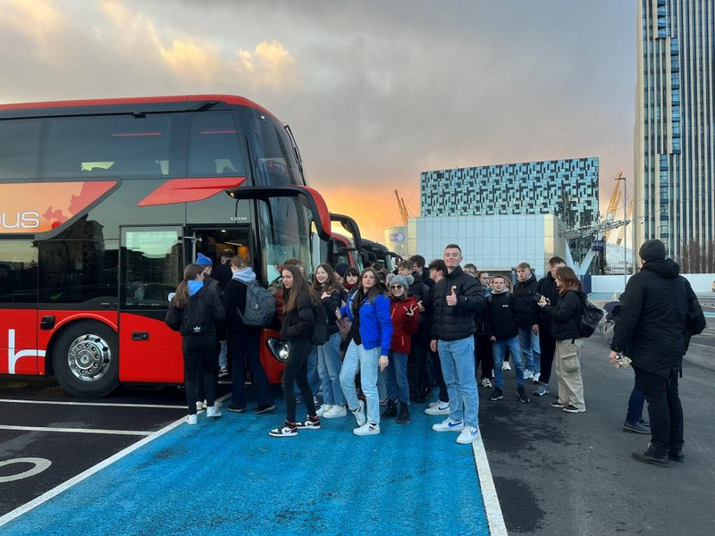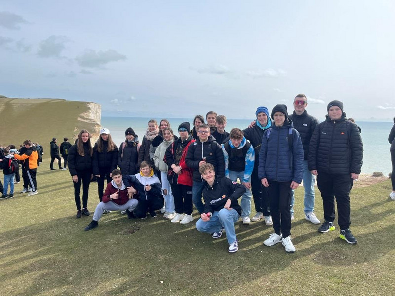 59 Schülerinnen und Schüler der Oberschule fuhren im modernen Reisebus nach Hastings (Südengland), begleitet von fünf Lehrer*innen.