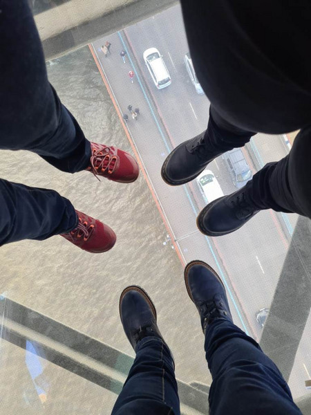 Höhepunkte waren natürlich auch die beiden Tage in London. Wir haben die Kronjuwelen im Tower of London besichtigt, sind auf der Towerbridge in schwindelerregender Höhe über den Glasboden gelaufen und fuhren mit dem Wassertaxi zur O2-Arena.
