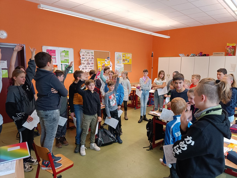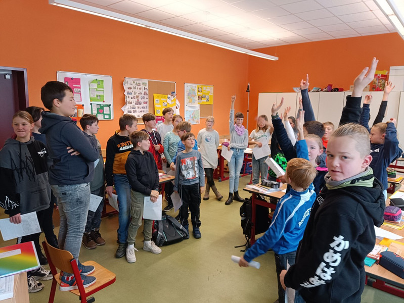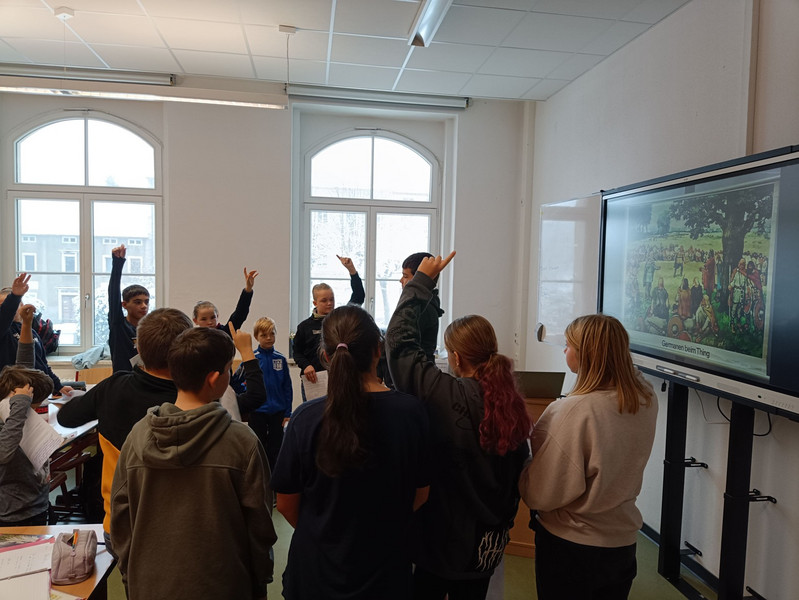 Die Schülerinnen und Schüler der 6a tauchten in ihrer Geschichtsstunde in die faszinierende Epoche der Völkerwanderung ein, und zwar am Beispiel der Sueben, einem germanischen Stamm. Die Lehrmethode dieses Tages war ein Rollenspiel, bei dem die Schülerinnen und Schüler entscheiden mussten, ob sie ihren Stammsitz verlassen sollten (pro) oder eher bleiben sollten (kontra).