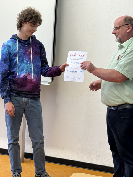 Franz Jäger aus der Klasse 7a konnte in der Finalrunde am 16.05.2024 den 2. Platz belegen. Herzlichen Glückwunsch!