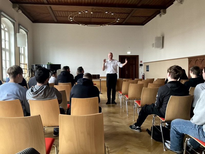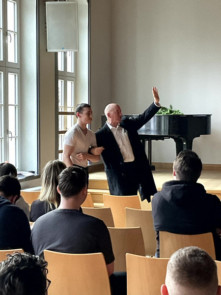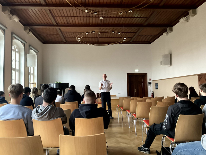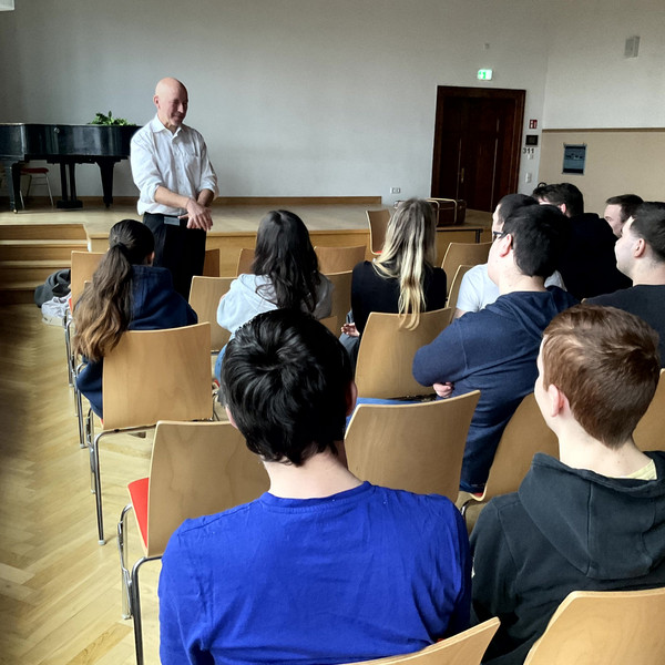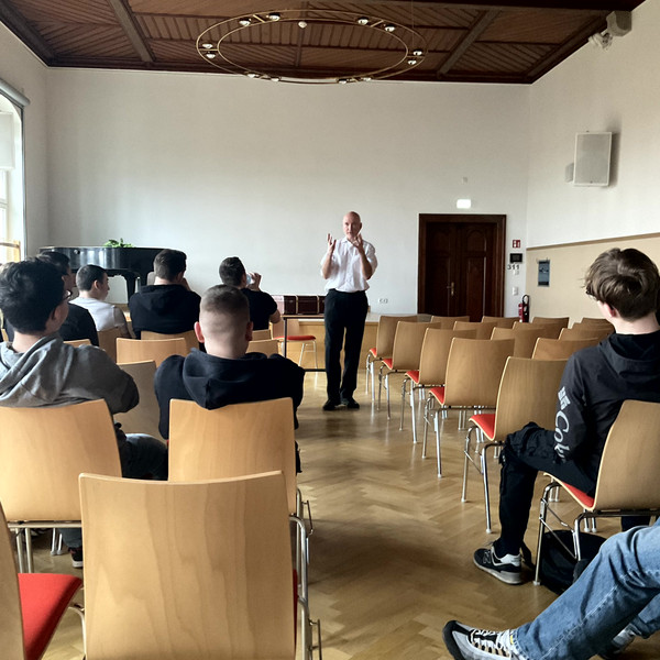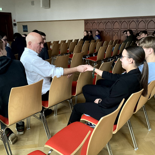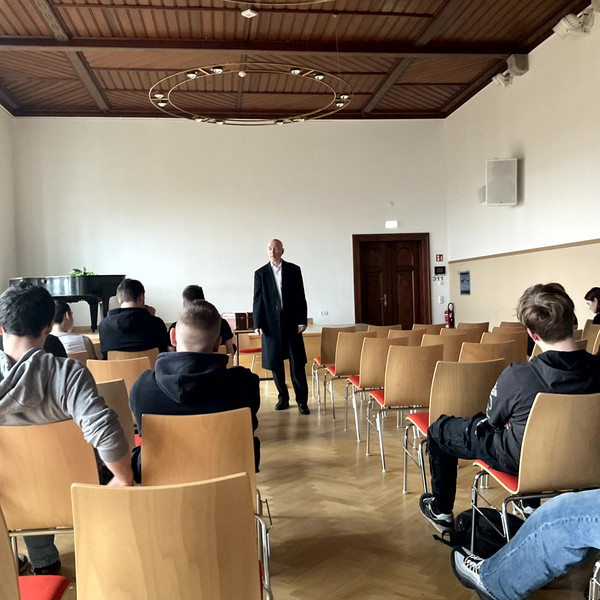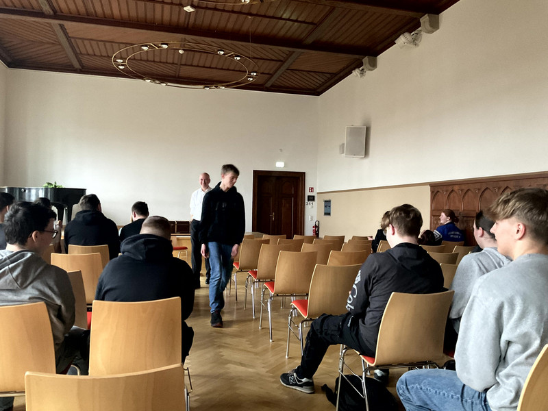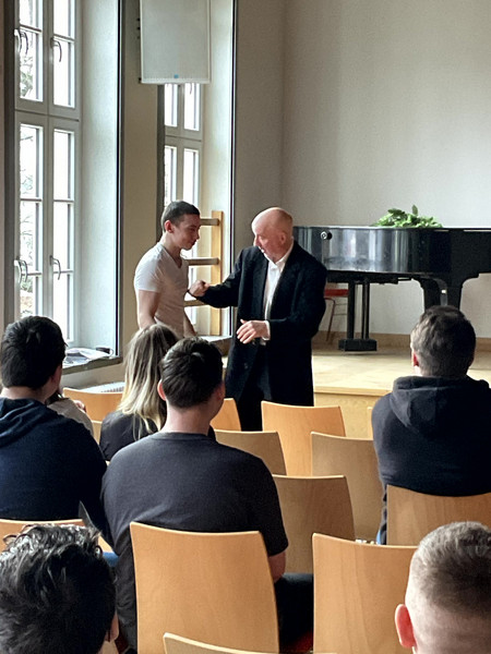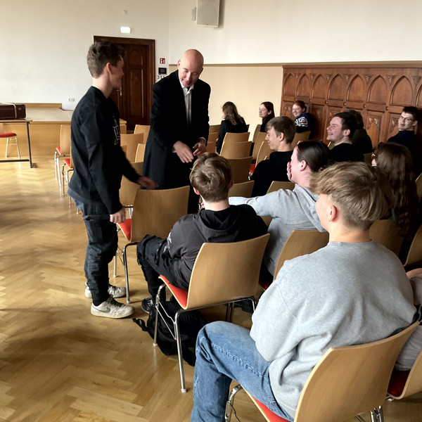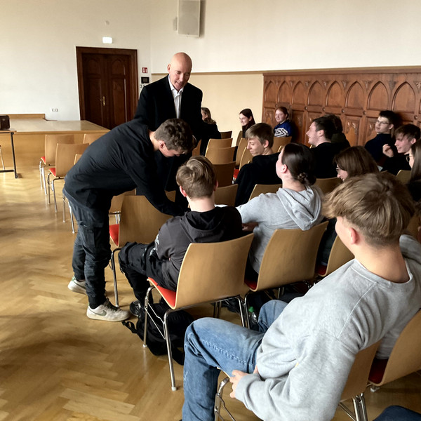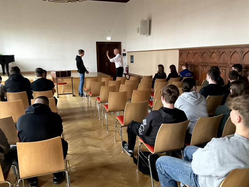 Dabei wurde der Schulstoff zu Goethes Lebenswerk in eine kurze Inszenierung gebracht. Rasant erzählte Steffen Pietsch, Schauspieler der Landesbühnen Sachsen, dieses umfangreiche Werk um den Doktor Heinrich Faust, der begreifen möchte, was die Welt im Innersten zusammenhält.