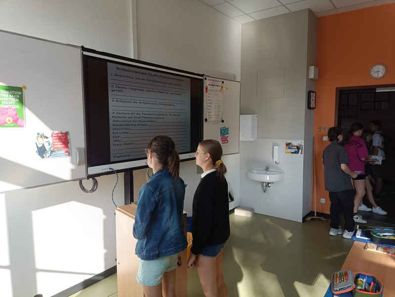 Am 30.08.2023, 2 Jahr nach der BT-Wahl und 2 Jahre vor der nächsten BT-Wahl, spazierten die Schülerinnen und Schüler der Klassenstufe 9b und der 9c mit einem besonderen Arbeitsauftrag durch das Klassenzimmer. Sie haben richtig gehört. Da derzeit keine Wahlen stattfinden und die Stadt nicht mit Wahlplakaten geschmückt ist, haben wir uns die Vielfalt unterschiedlicher Wahlplakate aus der letzten BT-Wahl im Klassenzimmer angeschaut. Im Rahmen des Gemeinschaftskundeunterrichts bestand die Aufgabe darin die Wahlplakate der verschiedenen Parteien mit Hilfe von Beobachtungsbögen zu betrachten. Die Beobachtungsbögen waren schnell gefüllt und ausgewertet. Die Plakate der Parteien wurden der strengsten Jury der Welt vorgestellt – unseren Schülerinnen und Schüler. Auf Grundlage der nun gemachten Erfahrungen sollen die Schülerinnen und Schüler selbst zeitnah tätig werden und Parteien gründen, die in einem simulierten Wahlkampf gegeneinander antreten. Natürlich braucht man dafür nicht nur ein überzeugendes Wahlprogramm, sondern auch ein ansprechendes Wahlplakat. Nun wird sich zeigen, welche Ideen die neu zu gründeten Parteien aus dem Wahlplakatsspaziergang mitgenommen haben. Werden ihre Plakate besser sein? Lassen wir uns überraschen. Ein kleiner Bericht dazu folgt.