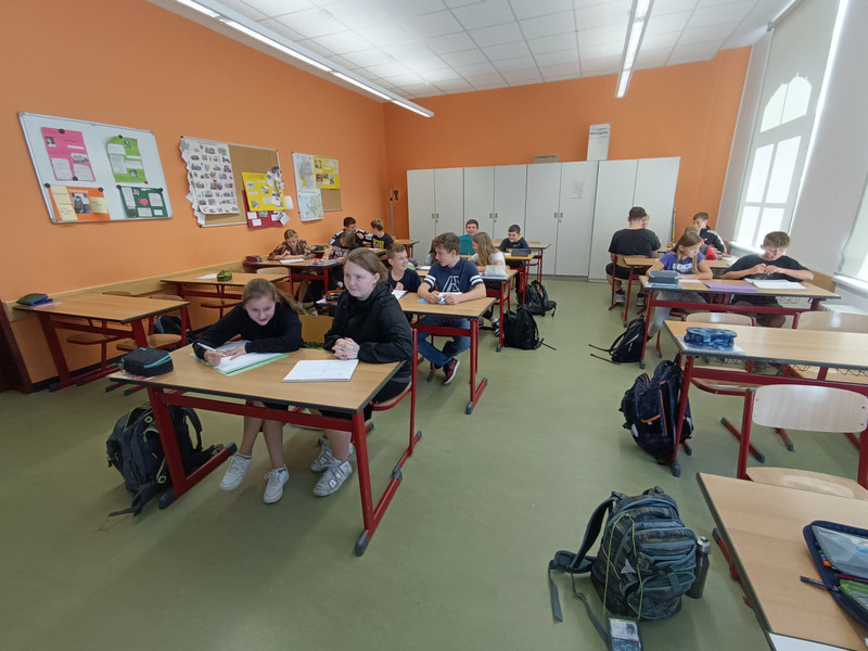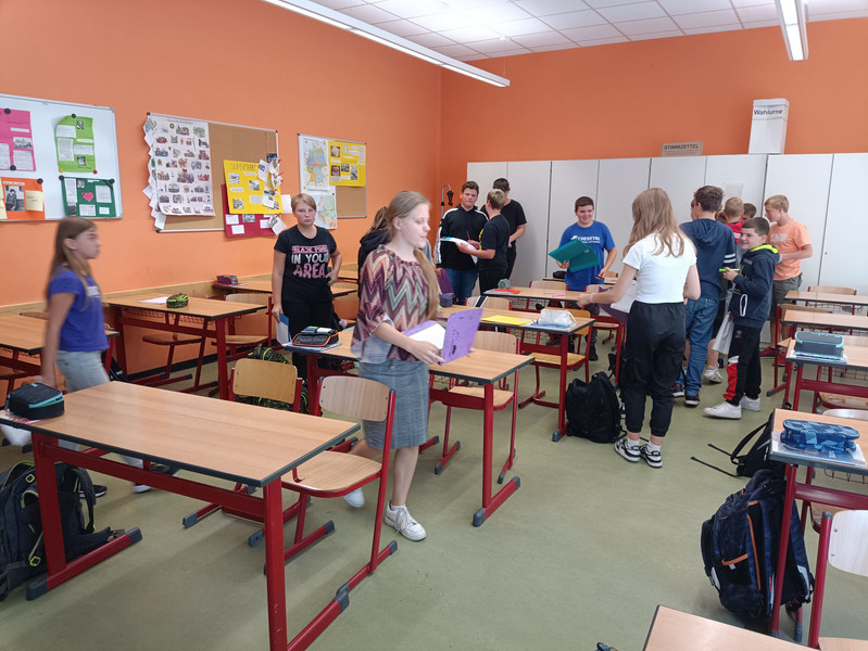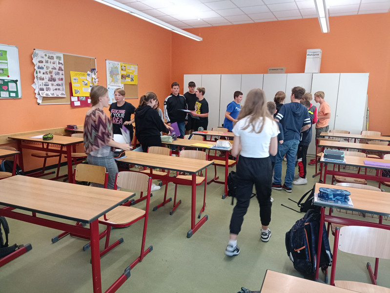 Doch damit nicht genug! Wir wollten unsere Gedanken teilen und die Vielfalt unserer Meinungen kennenlernen. Deshalb organisierten wir einen Klassenspaziergang, bei dem wir uns per Zufall neue Partner suchten. Dabei tauschten wir unsere Visitenkarten aus und führten kurze "Politikerinterviews" durch.