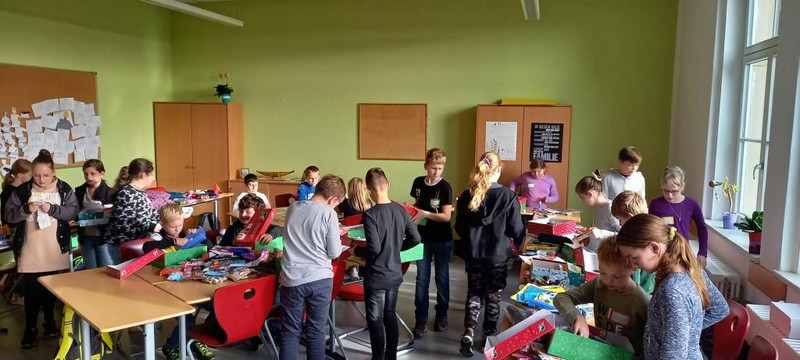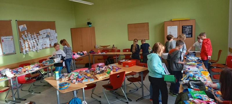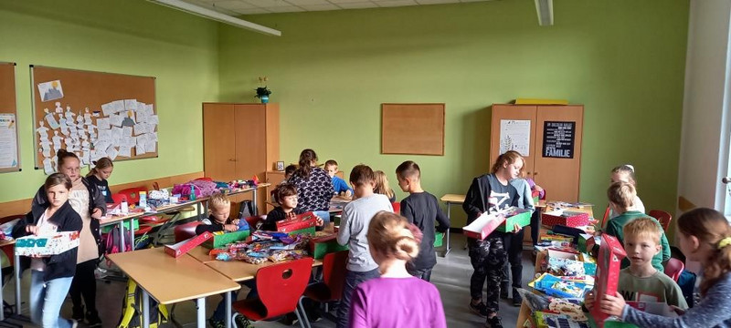 Im Vorfeld wurden sowohl Spielsachen, als auch Kleidungsstücke, Bastel- und Malmaterial sowie Süßigkeiten von der gesamten Schulgemeinschaft gesammelt. Am 01. November wurde dann geschnitten, geklebt, gepackt und gebastelt, was das Zeug hält. Aus einfachen Schuhkartons entstanden dabei 90 liebevoll gepackte Weihnachtsgeschenke, die nun an Kinder in aller Welt gehen.