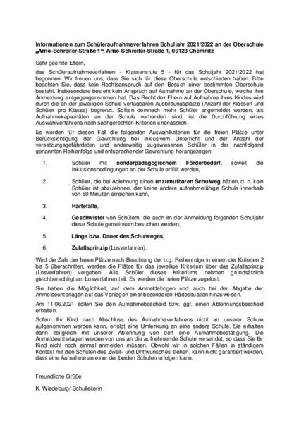 Sofern Ihr Kind nach Abschluss des Aufnahmeverfahrens nicht an unserer Schule aufgenommen werden kann, erfolgt eine Umlenkung an eine andere Schule. Sie erhalten dann zeitgleich mit unserer Ablehnung von dort eine Aufnahmebestätigung.