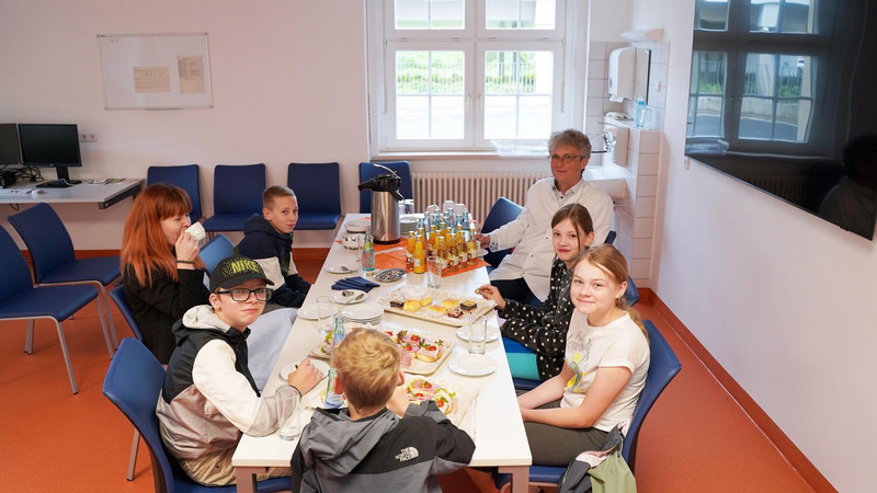 „Großartig!“ Viel mehr konnte Dr. Axel Hübler, Chefarzt der Klinik für Kinder- und Jugendmedizin heute nicht sagen, als Schülerinnen und Schüler der Chemnitzer Friedrich-Adolf-Wilhelm-Diesterweg-Oberschule einen symbolischen Scheck über 5.000 Euro überreichten.