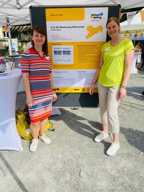 Am vergangenen Donnerstag, den 06.06.2024, nahm unsere Schule an der Schulmesse "Schooldating – Sachsens Schulen an deinem Campus" an der TU Dresden teil, um unsere Einrichtung potenziellen Bewerbern, insbesondere Lehrkräften, näher vorzustellen. Unser Stand auf der Messe wurde von Frau Loschelders und Frau Ludwig betreut.