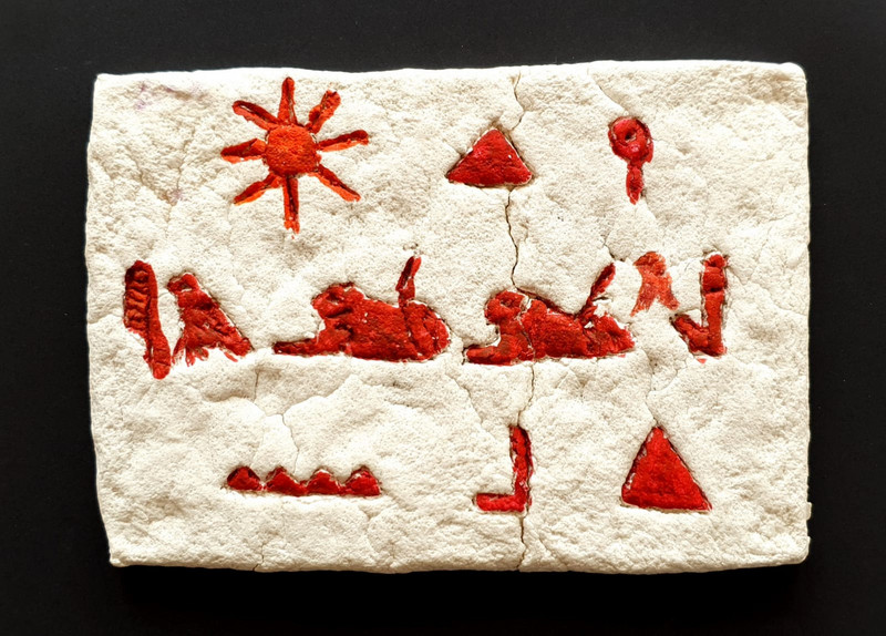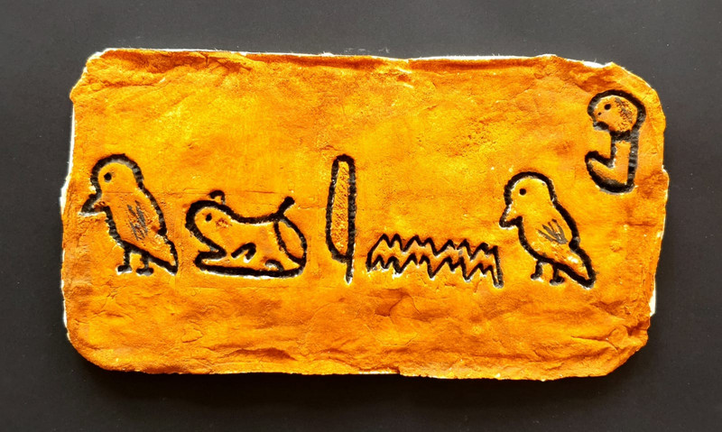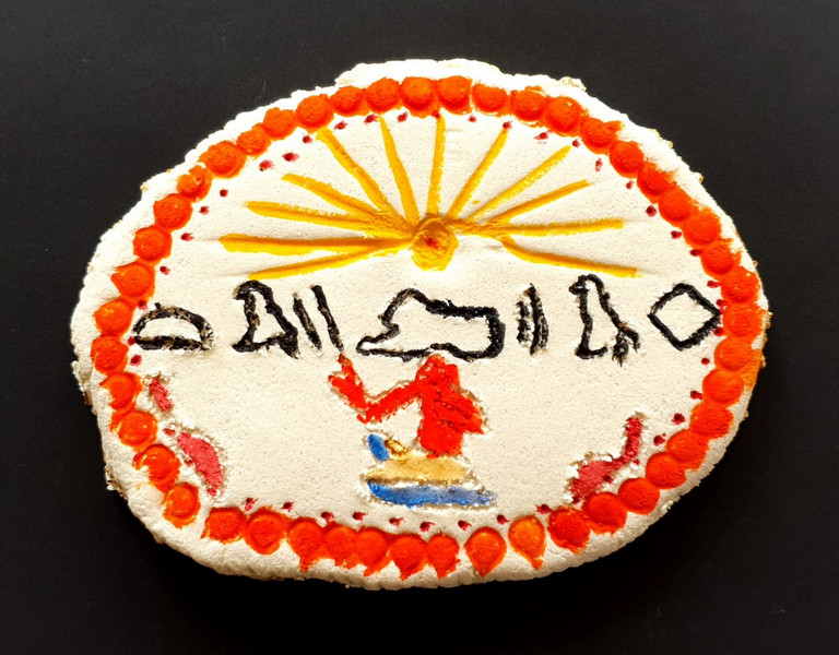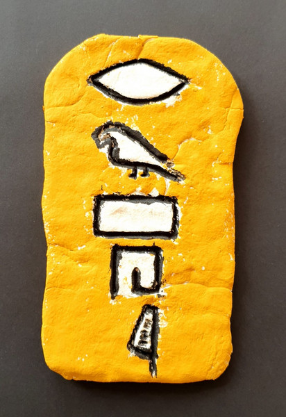 Die Schülerinnen und Schüler fertigten Schrifttafeln aus Salzteig an, um ihren Namen in ägyptischen Hieroglyphen zu gestalten.