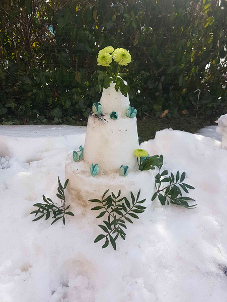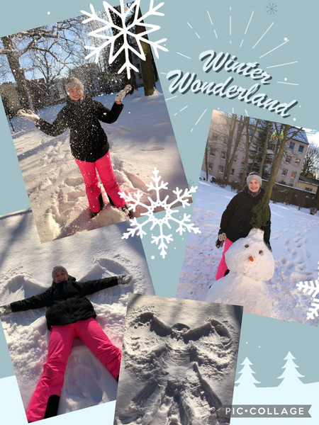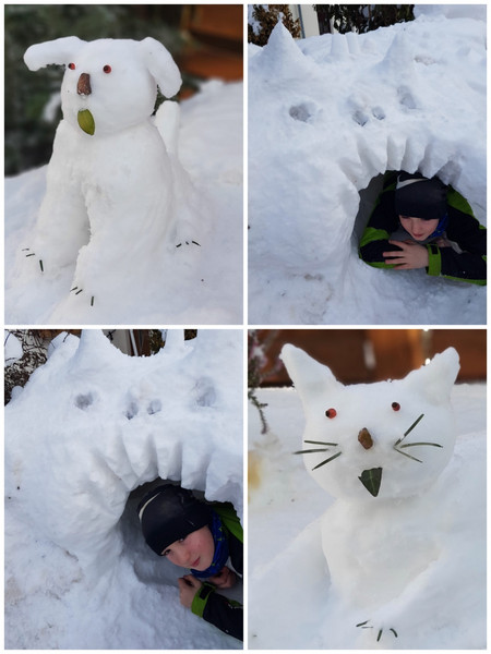 Geh raus an die frische Luft, atme mal tief durch und lüfte deinen Kopf zwischen all den Aufgaben in der häuslichen Lernzeit - so oder so ähnlich wurden die Schülerinnen und Schüler animiert eine kreative Pause im Schnee einzulegen - dabei wurde das weiße Material kreativ in Form gebracht, geknetet oder gerollt.